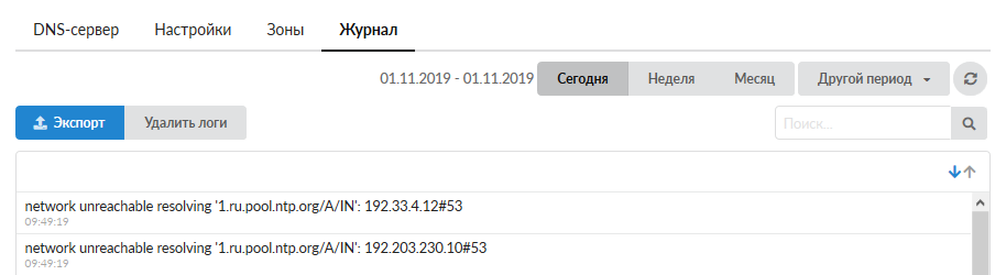 В закладке «Журнал» находится сводка всех системных сообщений от DNS-сервера. Журнал разделен на страницы, кнопками «вперед» и «назад» вы можете переходить со страницы на страницу, либо ввести номер страницы в поле и переключиться сразу на нее.