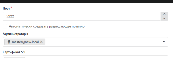 Поле «Сертификат SSL» необходимо для создания защищенного соединения «клиент-сервер». По умолчанию данные по протоколу передаются в открытом виде. Чтобы избежать этого, нужно выбрать в поле заранее сгенерированный SSL-сертификат для Jabber-сервера.