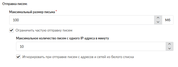 Следующие настройки нужны для задания различных ограничений при отправке писем: