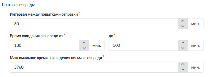 Следующие настройки нужны для задания различных интервалов времени при повторной отправке почтовых сообщений: