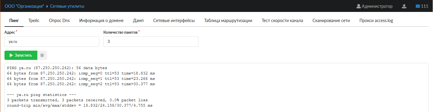 В состав ИКС входят несколько сетевых утилит, которые помогают выполнять диагностику сети.