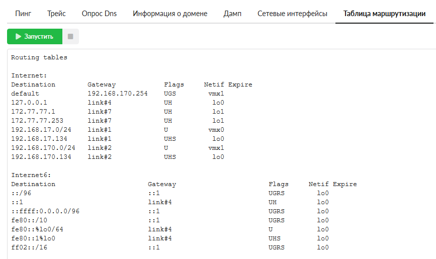 Данная утилита выводит текущую таблицу маршрутизации ИКС. С ее помощью вы можете увидеть все маршруты, созданные в системе.