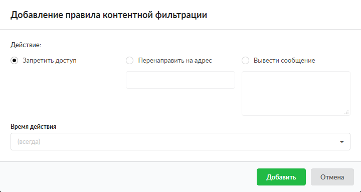 Добавив данное правило, для данного пользователя начнет действовать контентная фильтрация содержимого страниц, если контент-фильтр был настроен.