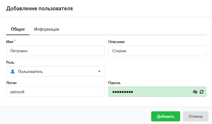 Добавление пользователя