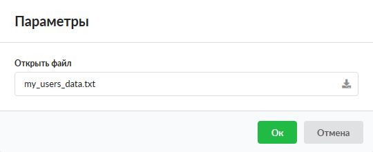 Из файла. Для импорта из файла источником служит файл формата *.txt, в котором перечислены строки, содержащие параметры (имя, логин, пароль, ip-адреса и mac-адреса разделенные запятыми), все параметры должны быть отделены запятой друг от друга и представлены в указанном порядке, а каждый новый пользователь в отдельной строке. Или файл должен иметь формат как файл создаваемый «ИКС» при экспорте Пользователей. Например – «Вася, vasya, 123, 192.168.34.56, 192.168.34.57, 08:ED:B9:49:B2:E5, 16-ED-C9-4D-52-E5». При этом, если какой-либо параметр в файле будет указан не верно, то в открывшейся форме можно будет внести изменения, а также добавить Пользователей и только после этого сохранить.