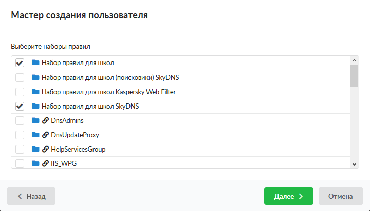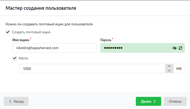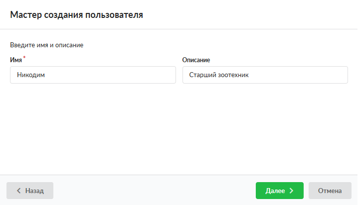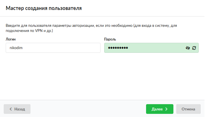 Мастер создания пользователя